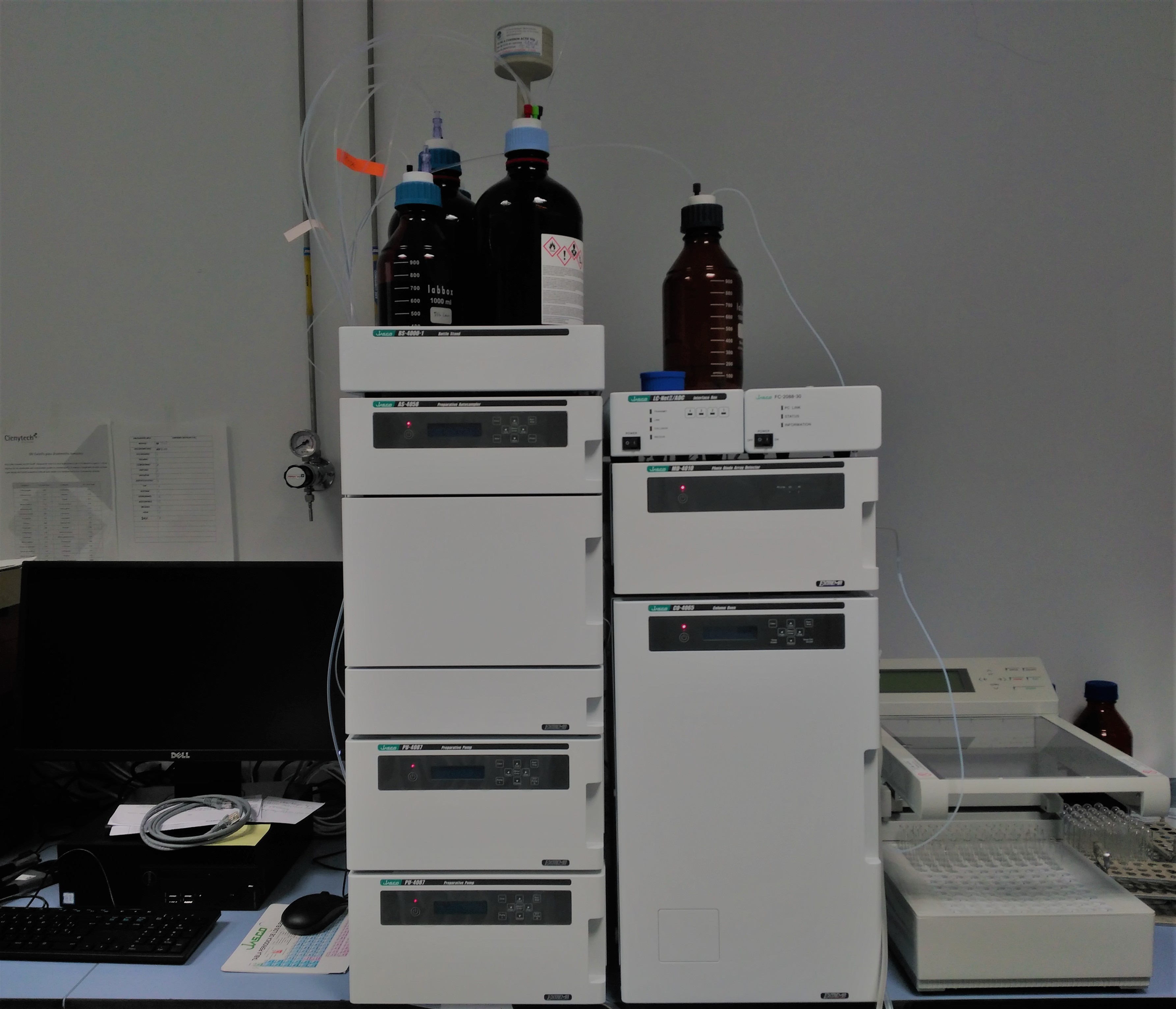 The group recently purchased a preparative scale HPLC Jasco LC-4000 Series equipped with:
